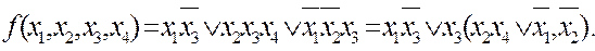 В логическом выражении может оказаться несколько членов с числом букв, превосходящим число входов элементов. В этом случае для сокращения числа используемых элементов следует провести соответствующее преобразование групп членов. Этот прием покажем на примере реализации преобразования логической функции ().