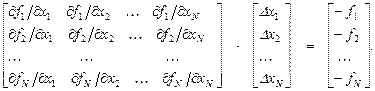 - Составляем и решаем систему линейных уравнений для малых приращений