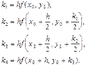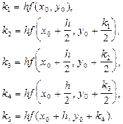 получено семейство схем Рунге-Кутта четвертого порядка, из которых наиболее используемой в вычислительной практике является следующая: