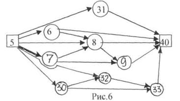 Точно также в сети не должно быть " хвостовых " событий, в которые не входит ни одна работа (событие 8), если только эти события не являются исходными для данной сети (рис.5).