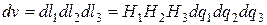 Найдем, прежде всего, выражения для элементов длины, площади и объема в ортогональной криволинейной системе координат. Для этой цели рассмотрим бесконечно малый криволинейный параллелепипед, вырезаемый тремя парами координатных плоскостей, отвечающих соответственно значениям параметров q 1, q 2, q 3, равным q 1 и q 1+ dq 1, q 2+ dq 2, q 3+ dq 3 (см. рис. 9.1).