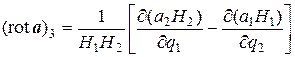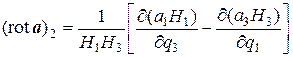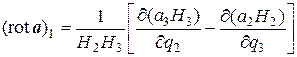 Деля полученное выражение на H 2 H 3 dq 2 dq 3, т.е. на площадь грани MM 2 N 1 M 3, получим, что компонента (rot a)1 вектора rot a в направлении базисного вектора e 1 равна