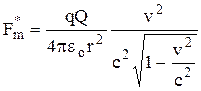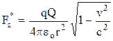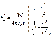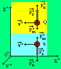 Таким образом, относительно системы отсчета Х*У*Z* заряды q и Q уже не находятся в покое, а движутся со скоростью