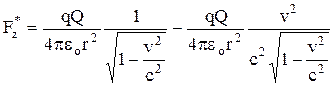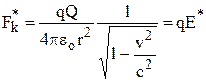 Найдем, какие силы действуют между этими зарядами в системе координат Х*У*Z*, которая движется вдоль оси Х со скоростью v (рис. 2).