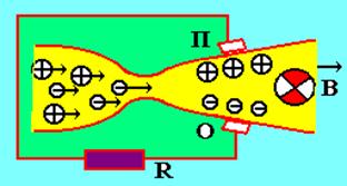 Роль проводника, движущегося в поперечном магнитном поле выполняет плазма, нагретая выше 2000 К (рис. 4).
