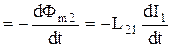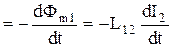 где коэффициенты пропорциональности L12 и L21 называют взаимной индуктивностью контуров. Они зависят от размеров, формы, взаимного расположения контуров и от магнитной проницаемости окружающей контуры среды. В теории доказывается, что при отсутствии ферромагнетиков