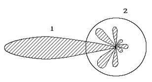Рис.10. Діаграми спрямованості основного (1) каналу і каналу ПБО (2).