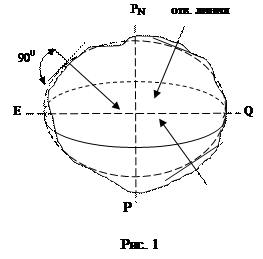 Формой Земли является геоид в переводе с греческого – «землеподобный» (рис.1). – геометрическое тело, поверхность которого во всех точках перпендикулярна направлению силы тяжести. Поскольку геоид передает действительные размеры и форму Земли, неравномерное распределение массы Земли делает поверхность геоида нерегулярной. Такая нерегулярность имеет серьезные ограничения, как математическая модель Земли, потому что: