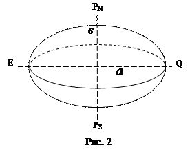Геометрия геоида очень сложна, что затрудняет обработку навигационных измерений на его поверхности. Поэтому для геодезических целей для изготовления карт земной поверхности и навигационных морских карт используют геометрическую форму, близкую к форме геоида и имеющую определенное математическое выражение. Эта форма – эллипсоид вращения – тело, полученное в результате вращения эллипсоида вокруг малой оси (рис.2).