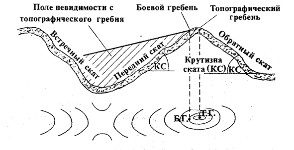 Рис. 20. Положение топографического и боевого гребней.