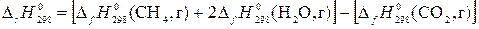 p = 1 атм. В термодинамические таблицы сведены стандартные теплоты сгорания, рассчитанные для температуры 298 К.