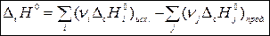 – стандартная энтальпия (теплота) образования вещества (индекс f означает «formation» – образование);