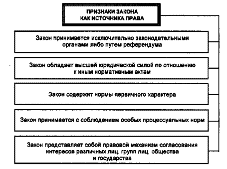 Схема - Признаки закона как источника права