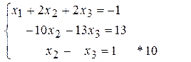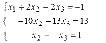 Шаг 3. Значения неизвестных находятся поочередно из последнего уравнения, предпоследнего и т.д. до первого уравнения. Указанное действие называется обратным ходом Гаусса.