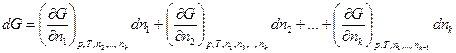 G = f (p, T, n 1, n 2, …, nk),