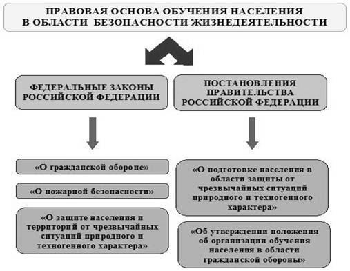 НОРМАТИВНАЯ ПРАВОВАЯ БАЗА ПО ОРГАНИЗАЦИИ И ОСУЩЕСТВЛЕНИЮ ОБУЧЕНИЯ НАСЕЛЕНИЯ В ОБЛАСТИ БЕЗОПАСНОСТИ ЖИЗНЕДЕЯТЕЛЬНОСТИ. ПРАВОВОЕ РЕГУЛИРОВАНИЕ ПОДГОТОВКИ НАСЕЛЕНИЯ В ОБЛАСТИ ЗАЩИТЫ НАСЕЛЕНИЯ ОТ ЧРЕЗВЫЧАЙНЫХ СИТУАЦИЙ