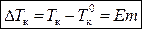 где m – моляльная концентрация раствора; E – эбуллиоскопическая постоянная растворителя, зависит только от природы растворителя и давления и не зависит от природы растворенного вещества: