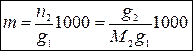 Моляльная концентрация раствора m равна числу моль растворенного вещества в 1000 г растворителя: