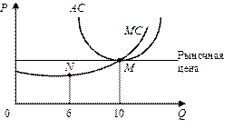 При движении от точки М вправо увеличение производства ведет к уменьшению прибыли, поскольку на каждую единицу товара растут добавочные расходы. Поэтому точка М – это точка предела. Она отражает равновесие фирмы. В этой точке цена предложения (куда входит прибыль в качестве платы предпринимателя за риск) совпадает со средними предельными издержками.