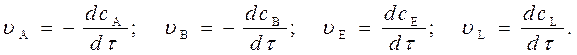 Скорость реакции всегда положительна, поэтому для исходных веществ, концентрация которых с течением времени убывает, перед производной ставится знак минус.
