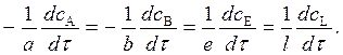 Изменения концентраций каждого из реагентов связаны друг с другом стехиометрическими соотношениями. Тогда для реакции (1)