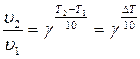 Например, если при повышении температуры на 60 °С скорость реакции возросла в 64 раза, то температурный коэффициент g равен