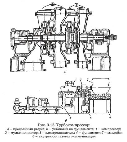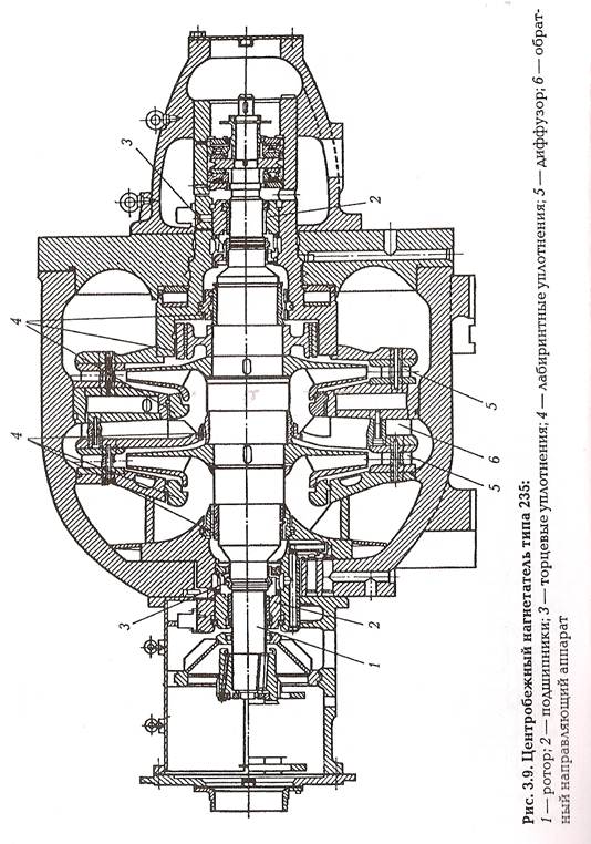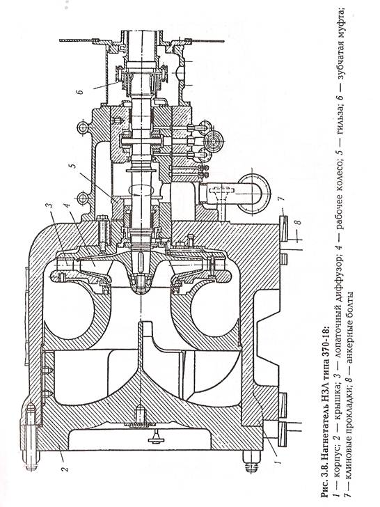 Как и во всякой центробежной машине, основной частью их являются рабочие колеса, при помощи которых передается энергия от двигателя к сжимаемому газу.