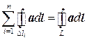Сумму в правой части (7.10) преобразуем следующим образом. Все внутренние участки соприкасаются друг с другом. Тогда все криволинейные интегралы по линиям соприкосновения будут входить в указанную сумму два раза, но в разных направлениях. В результате, в сумме эти интегралы дадут нуль. Следовательно, останется лишь сумма интегралов по внешней линии L: