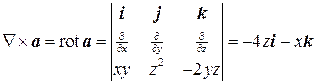 Первое и второе выражения тождественно равны нулю. Это можно доказать, если расписать эти выражения по компонентам. Однако это легко объяснить, если привлечь аналогичные формулы из векторной алгебры. Для формулы 10 можно написать Ñ´(Ñj)=(Ñ´Ñ)j, но векторный квадрат, как известно, всегда равен нулю: a ´ a =0. Выражение 20 можно сравнить со смешанным произведением a (a ´ b)=0, т.к. a ^ a ´ b. То, что формулы 10 и 20 тождественно равны нулю, имеет особое значение для потенциальных и соленоидальных полей.