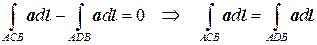 Действительно, рассмотрим две точки A и B и два пути между ними ACB и ADB (см. рис. 8.1). Если векторное поле a потенциально, то циркуляция по контуру ACBDA будет равна нулю: