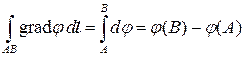 Теорема. Циркуляция односвязного потенциального поля между двумя точками не зависит от пути, соединяющего эти точки, и равна разности значений потенциала поля в этих точках: