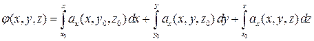 Рассмотрим циркуляцию потенциального поля a вдоль любого пути M 0 M – соединяющего произвольно фиксированную точку M 0(x 0, y 0, z 0) с текущей точкой M (x,y,z). Тогда в соответствии с формулой (8.21):