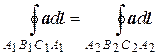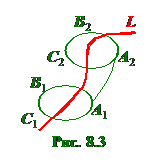 Действительно, рассмотрим два замкнутых контура (A1B1C1A1) и (A2B2C2A2), охватывающих по одному разу вихревой шнур L (рис. 8.3). Соединим точки A1 и A2 этих контуров линией (A1A2) и рассмотрим получившийся новый замкнутый контур (A1A2C2B2A2A1B1C1A1), в котором линия (A1A2) повторяется два раза. Этот контур можно стянуть в одну точку, не пересекая границ поля. Следовательно, циркуляция поля a по этому контуру будет равна нулю. При этом, интеграл по линиям (A1A2) и (A2A1) взаимно уничтожаются. Поэтому можно написать: