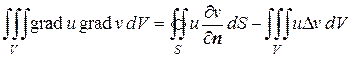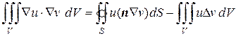 Из полученных формул Грина можно получить еще несколько формул. В частности, если в формуле (8.44) положить u=v, получим