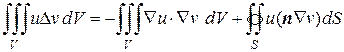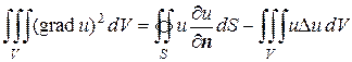 Применяя к первому слагаемому правой части формулу Остроградского-Гаусса, получим