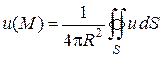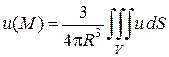 где S – сфера радиуса R с центром в точке M, целиком лежащая в области V.