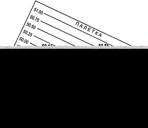 Сечение рельефа на вычерчиваемом плане 0.25 метра, соответственно и горизонтали палетки оцифрованы через 0.25 метра, от минимальной отметки плана до максимальной. Накладываем палетку на отрезок между точками А и В с отметками 50.12 м и 50.85 м. Палетку поворачивают таким образом, чтобы точки А и В заняли места между соответствующими горизонталями палетки, согласно их отметкам. Тогда горизонтали палетки 50.25, 50.50, 50.75 м пересекут отрезок АВ в точках, отметки которых будут соответственно 50.25, 50.50, 50.75 м. Точки пересечения накалывают карандашом или измерителем, а их следы отмечают на плане. Высоты полученных точек предварительно подписывают карандашом.