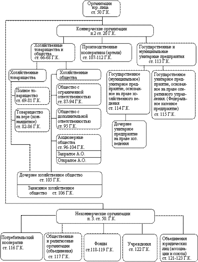 Организационно-правовые формы организации в соответствии с Гражданским кодексом РФ приведены на рис. 9.