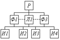 Рис. 4.1.3. Линейно-функциональная структура управления: Р—руководитель: Ф —функциональные органы управления (функциональные руководители): Л — линейные органы управления: И — исполнители