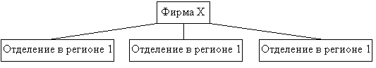 Если деятельность предприятия охватывает большие географические зоны, особенно в международном масштабе, то может оказаться целесообразной организационная структура по территориальному принципу, т.е. по месту расположения ее подразделений (рис 4.1.6). Региональная структура облегчает решение проблем, связанных с местным законодательством, обычаями и нуждами потребителей. Такой подход упрощает связь предприятия с клиентами, а также связь между его подразделениями.