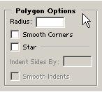 Многоугольник можно создать в виде классического многоугольника и в виде звезды. Для этого можно воспользоваться параметром Star. При использовании этой опции становится доступными поле Indent Sides By - который управляет остротой лучей звезды (чем больше значение, тем острее луч).