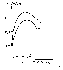 В разбавленных растворах æ с увеличением концентрации растет, при некоторой достаточно высокой концентрации достигает максимума и затем уменьшается.