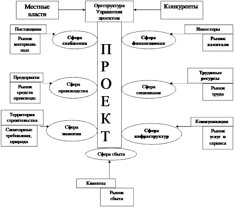 Проект можно рассматривать как кратковременную мини - организацию внутри предприятия. На проект оказывают влияние все подразделения предприятия, с которыми связан процесс его появления и реализации. Как правило, это подразделения из следующих сфер деятельности: