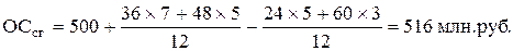 На начало года основные средства предприятия составляли 500 млн. руб. Ввод основных средств планируется в мае на сумму 36 млн. руб. и в июле на сумму 45млн. руб. Выбытие основных средств планируется в июле на сумму 24 млн. руб. и сентябре на сумму 24 млн. руб. Среднегодовая стоимость в этом случае составит:
