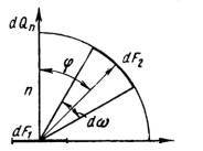 Закон Ламберта устанавливает, что количество лучистой энергии, излучаемое элементом поверхности dF1 в направлении элемента dF2, пропорционально произведению количества энергии, излучаемой по нормали dQn, на величину пространственного угла dω и cosω, составленного направлением излучения с нормалью (рис.11.2): d2Qn = dQn*dω*cosω. (11.14)