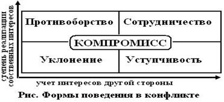 Межличностные методы. При создании конфликтной ситуации или начале развертывания самого конфликта его участникам необходимо выбрать форму, стиль своего дальнейшего поведения с тем, чтобы это в наименьшей степени отразилось на их интересах.