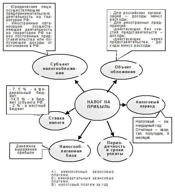 Ставка налога установлена в размере 24 %для всех категорий налогоплательщиков одинаковой(первоначально она составляла – 35 %). Налог на прибыль распределяется между бюджетами трех уровней: 7,5% - зачисляется в федеральный бюджет; 14,5% - в бюджет субъекта Федерации; 2%- в местный бюджет. Субъекты Федерации могут снижать ставку налога для отдельных категорий налогоплательщиков в части суммы, поступающих в их бюджеты.