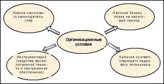 Организационные условия для проведения налогового планирования предусматривают следующие моменты (см. рис.10.5.):