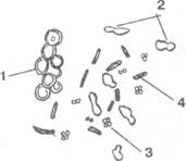 Осадок пива: 1-культурные дрожжи; 2-другие виды дрожжей; 3-педиококки; 4-молочно-кислые бактерии.