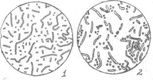 Бактерии: 1-слизеобразующие (Bacterium viscosus); 2-тартарофорум (Bacterium tararophrun).